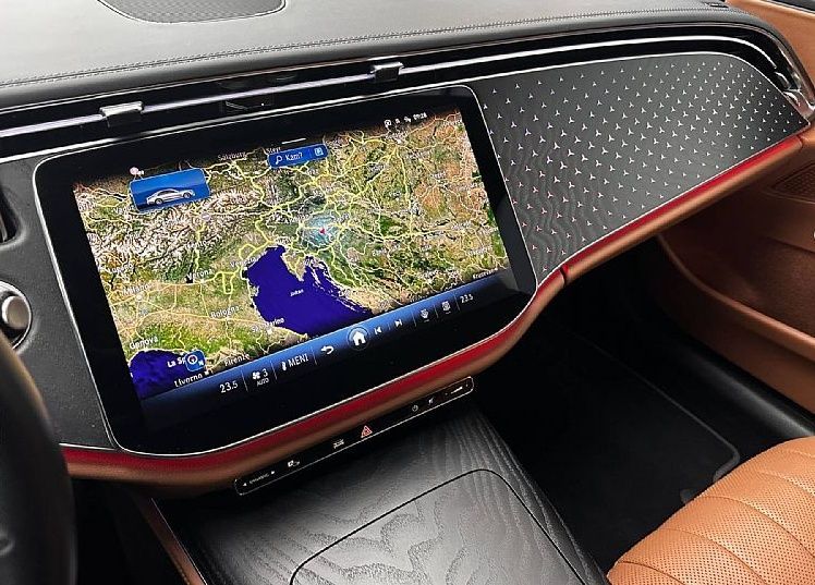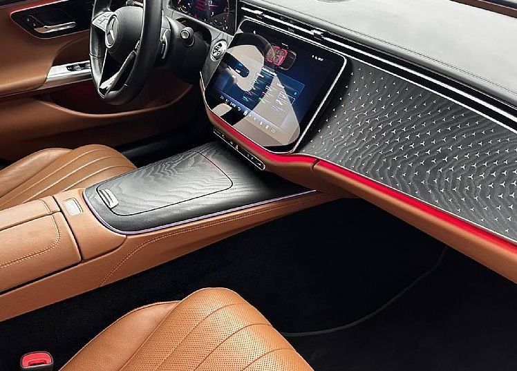 - Okrasni element v črnem lesu z odprtimi porami ter zvezdicami Mercedes-Benz