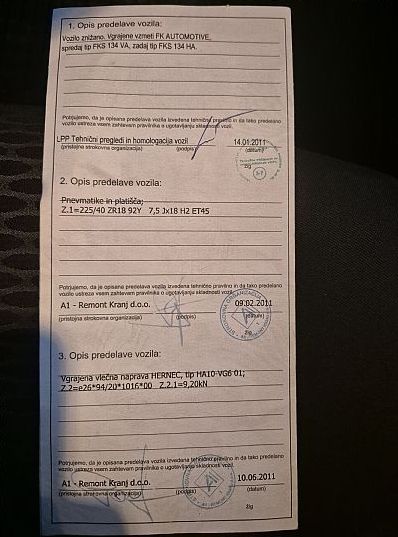 Vse predelave vpisane v homologacijski karton
