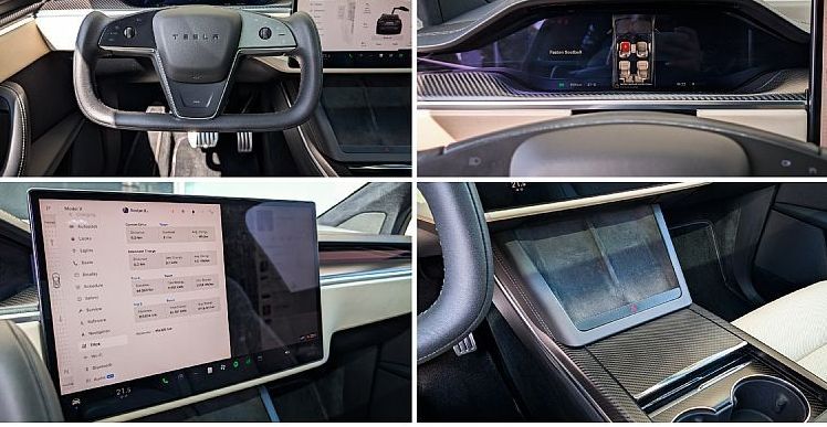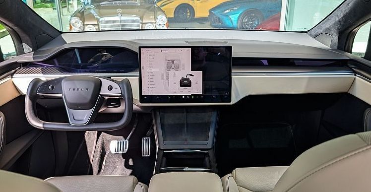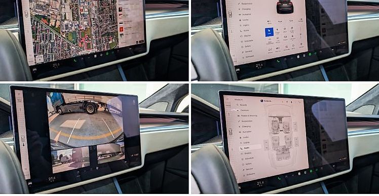 - Infotainment sistem: 17-palčni osrednji zaslon na dotik, usmerjen v pokončni položaj. Ponuja navigacijo, spletni brskalnik, pretakanje medijev in igre.