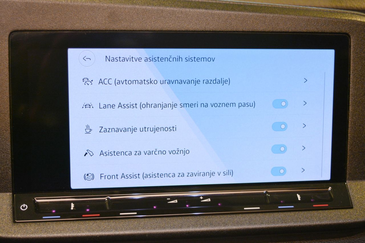 - Asistenčni sistemi: ACC – aktivni radarski tempomat, Lane Assist - ohranjanje vozila na voznem pasu, Front Assist - preprečevanje naleta vozila s samodejnim zaviranjem v sili, Zaznavanje utrujenosti